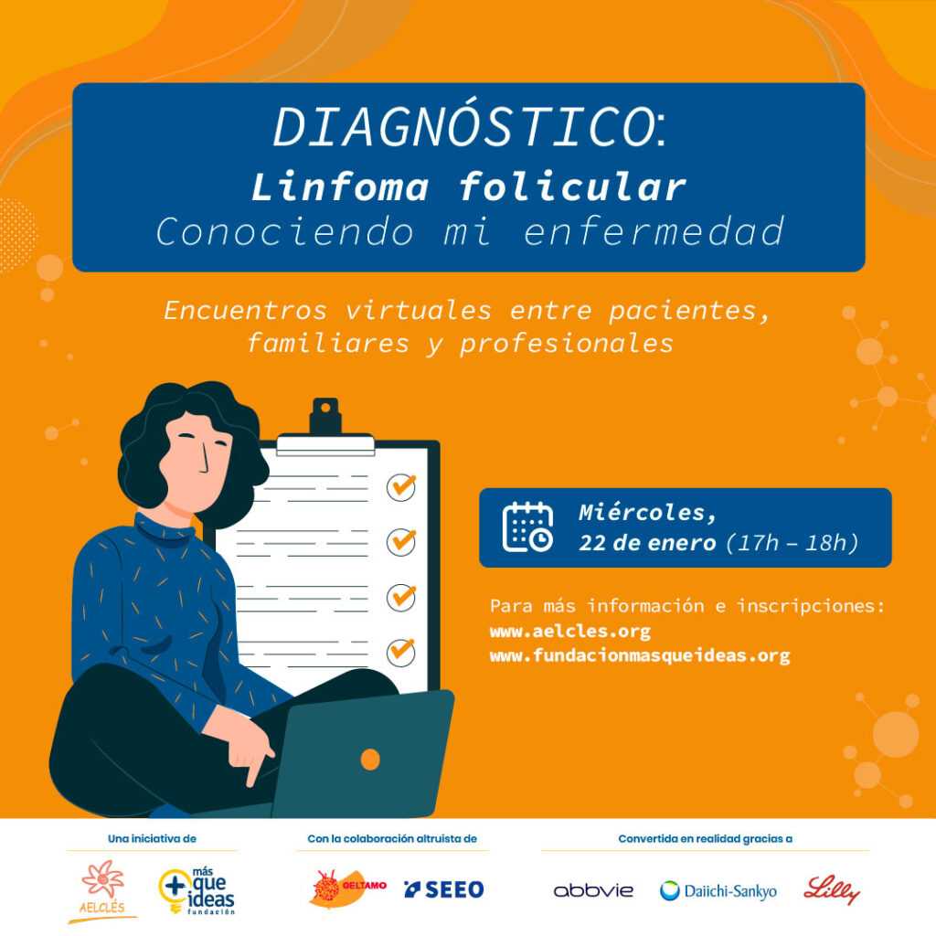 Por eso, desde la Agrupación Española contra la Leucemia y Enfermedades de la Sangre (AELCLÉS) y la Fundación MÁS QUE IDEAS, hemos creado este ciclo de encuentros virtuales diseñado para ofrecer apoyo e información de calidad. Contamos con la colaboración altruista del Grupo Español de Linfomas/Trasplante Autólogo de Médula Ósea GELTAMO y la Sociedad Española de Enfermería Oncológica SEEO y con el apoyo de las compañías farmacéuticas Abbvie, Daiichi-Sankyo y Lilly.